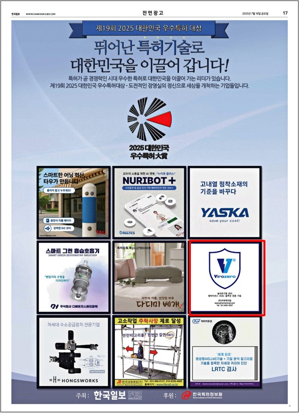 한국일보사는 이러한 국내외 특허시장의 현황을 반영하여 특허 사업화 전략의 중요성을 널리 알리고 지원하며 궁극적으로 국내 산업 발전에 이바지하기 위해 올해로 19회째 ‘2025 상반기 대한민국 우수특허대상’을 진행했다. 총 400여 개의 기업이 엄격한 심사를 받은 가운데 90개 기업의 우수 특허 기술이 최종 선정됐다. 심사위원단은 전문성, 경쟁력, 생산성, 지적재산권 등 기술성과 상품시장 마케팅, 품질인증 경영 및 사업성 그리고 제품·디자인과 브랜드 등을 종합적으로 평가했다. 심사는 생활/디자인, 전기/전자, 기계/건설, 생명공학/화학 등 총 4개 분야로 나뉘어 진행했다.